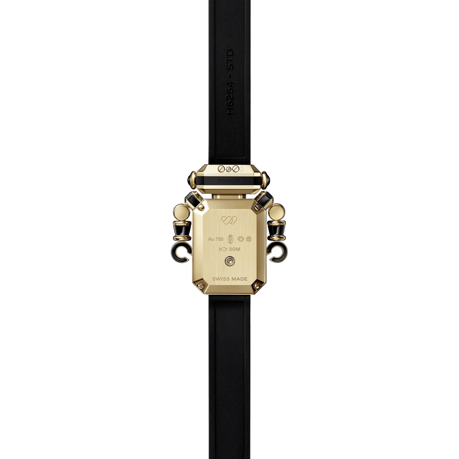 Yellow gold and diamonds. black rubber with velvet touch. black-lacquered dial
