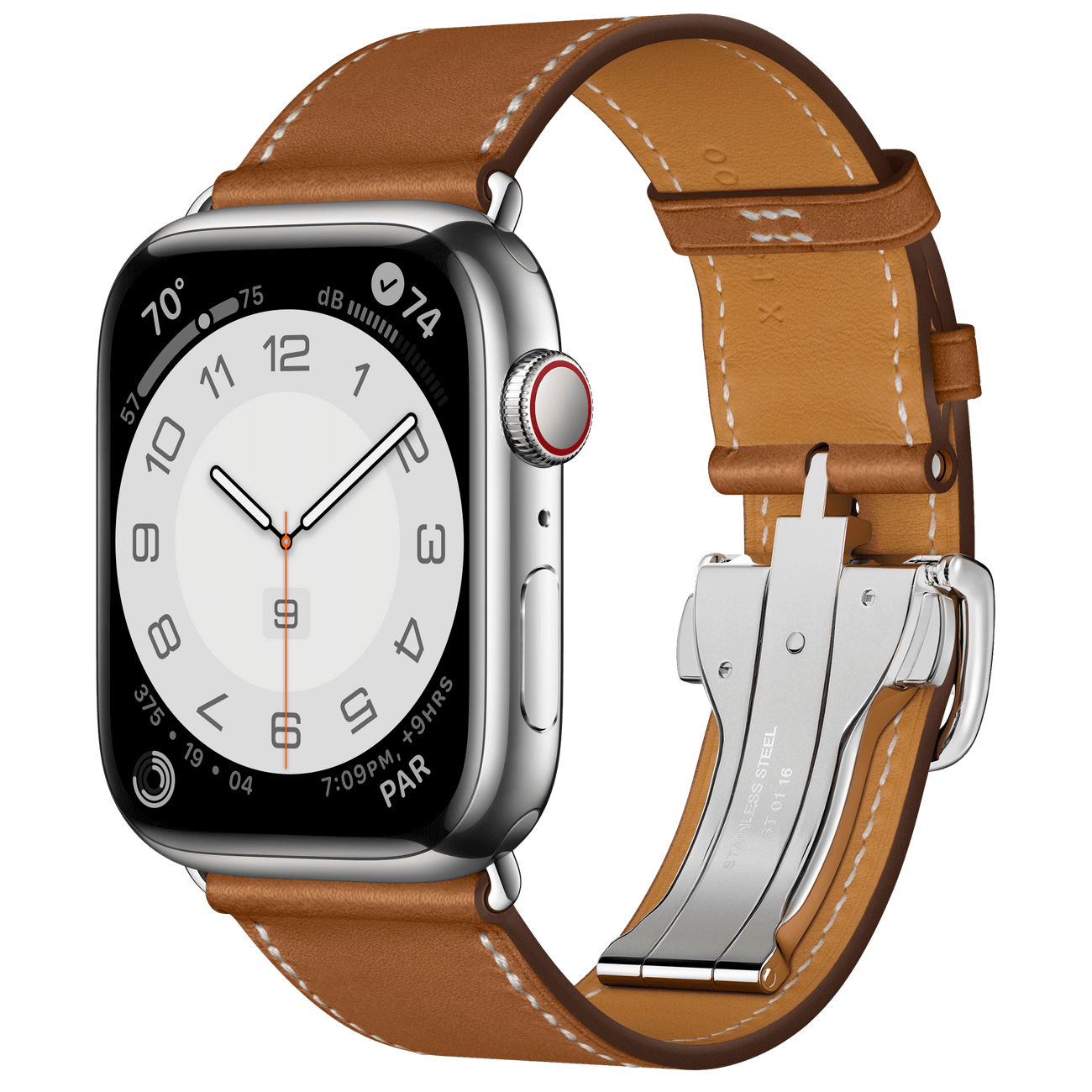 The stainless steel case is durable and polished to a shiny. mirror-like finish. The Single Tour Deployment Buckle is made from handcrafted leather. and has a hidden buckle for a sleek twist on an Hermès classic.
